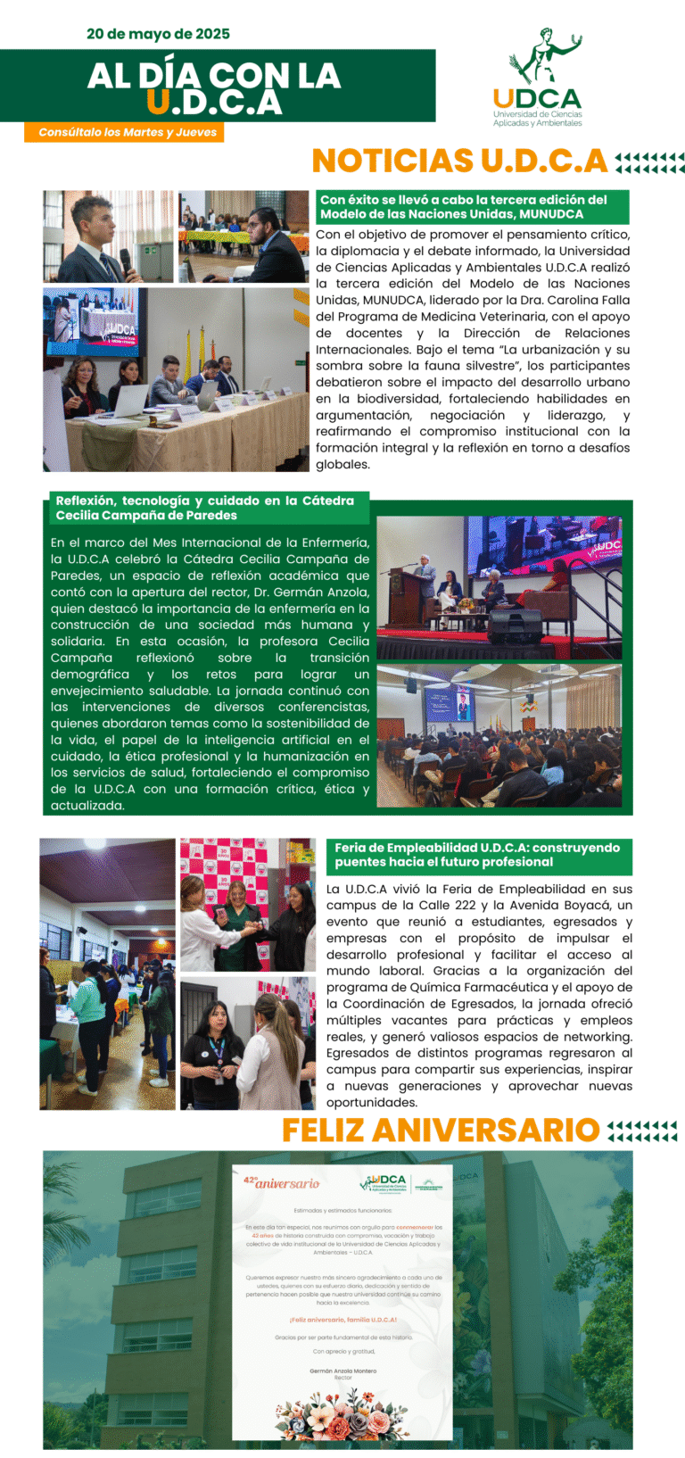 Aquí encontrarás los acontecimientos más recientes de la vida universitaria de la U.D.C.A
